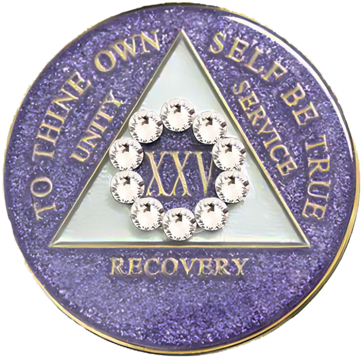 AA Coin, #A45. Glitter Lavender AA Medallion w White Crystal Circle (Yrs 1-50)