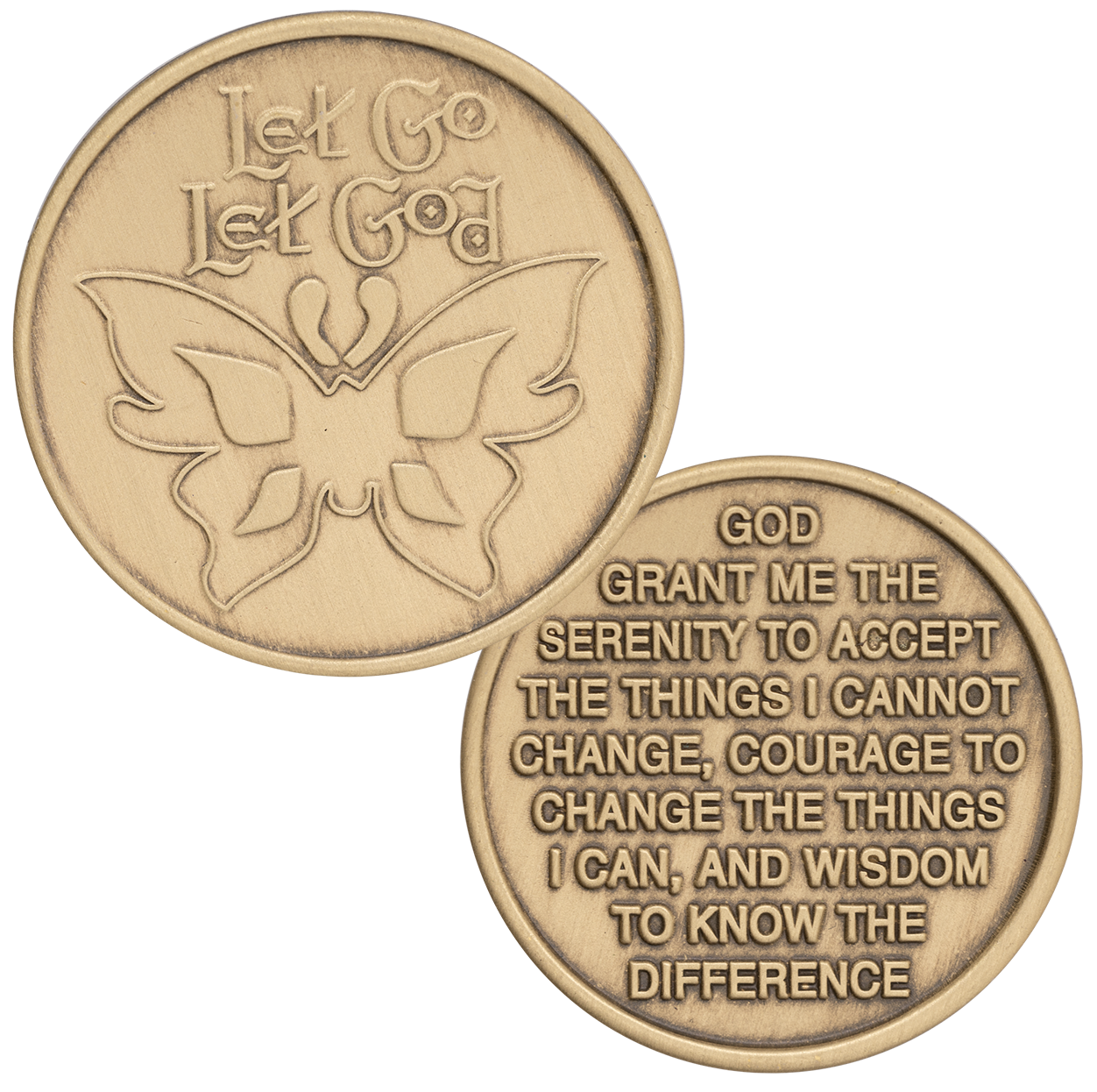C05. Butterfly, Let Go Let God, Bronze Coin. BRM91 - Premium Medallions from Wendells - Just $2.50! Shop now at Choices Books & Gifts