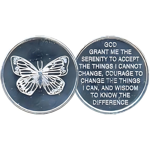Introducing CHOICES ‚Butterfly Serenity Prayer Aluminum Coin is a beautifully crafted and intricately detailed medallion that symbolizes hope, strength, and recovery. Featuring an elegant butterfly design alongside the timeless Serenity Prayer, this coin makes a thoughtful gift for anyone striving to stay sober or a meaningful token of support for the cause. Lightweight yet durable, it's also a perfect way to keep track of your progress on your recovery journey.