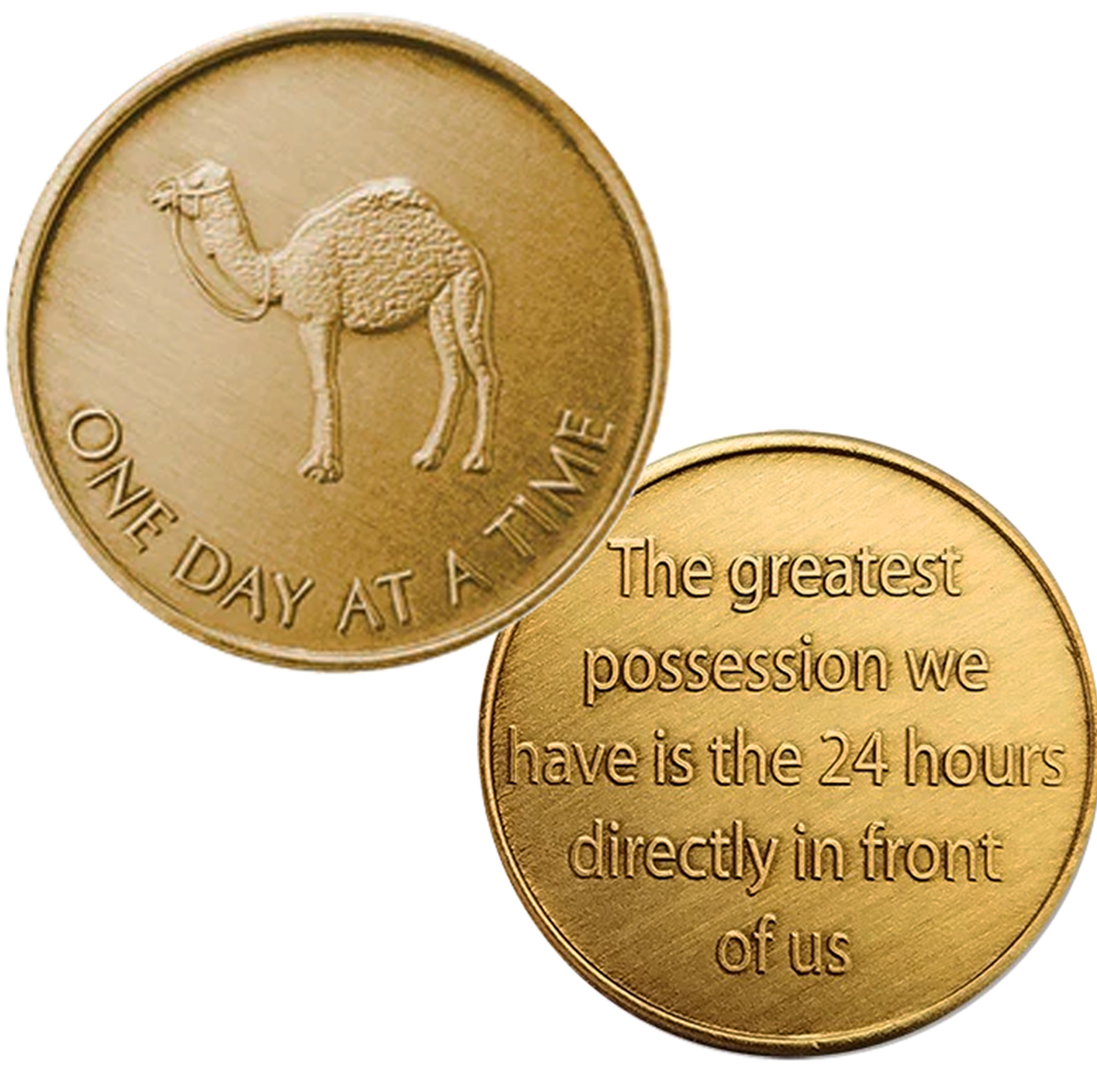 Introducing CHOICES ‚ Camel ‚One Day at a Time‚ Front ‚Greatest Possession‚ Bronze Coin is a powerful reminder that you can overcome any obstacle. Crafted from sterling bronze, this medallion makes a meaningful gift for anyone committed to sobriety. It serves as both a symbol of strength and a way to show your support for those on their recovery journey.