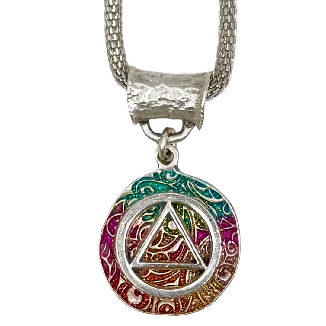 This gorgeous collection of jewelry includes an array of fine and fashionable jewelry options - 14KT Gold, Sterling Silver, and fashionable metal options that include earrings, rings, necklaces, and bracelets crafted with AA-related insignia such as the AA circle and triangle symbol, the Serenity Prayer, or other phrases emblematic of the principles and values of the program. AA jewelry can serve as personal reminders of commitment to sobriety, symbols of solidarity within the AA community, and sources of inspiration and encouragement on the journey to recovery.