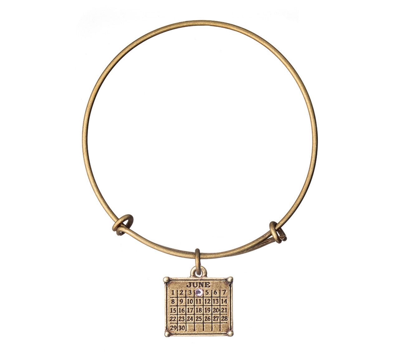 The Not Just Any Old Day... It's your Special Day® Mini Calendar Charm looks amazing on our expandable wire bangle bracelet. This adjustable bracelet ensures a perfect fit on just about every size wrist. Our Calendar bracelet looks great stacked with other charm bangles you may already have in your collection. Celebrate the ones you love with a unique personalized bracelet that will touch the heart.