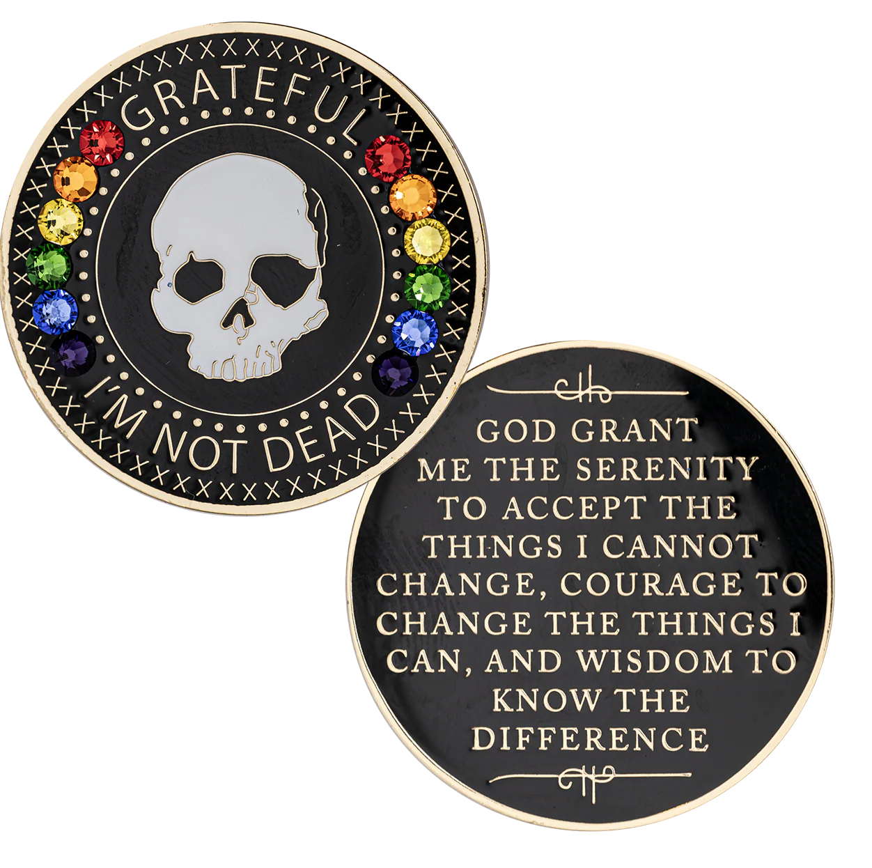 Introducing CHOICES β The Grateful I'm Not Dead Medallion is a powerful and sober reminder of your dedication to recovery. Itβ a meaningful token that can complement your personal style, add depth to your professional or casual look, and even serve as a conversation starter when connecting with friends and family in sobriety.