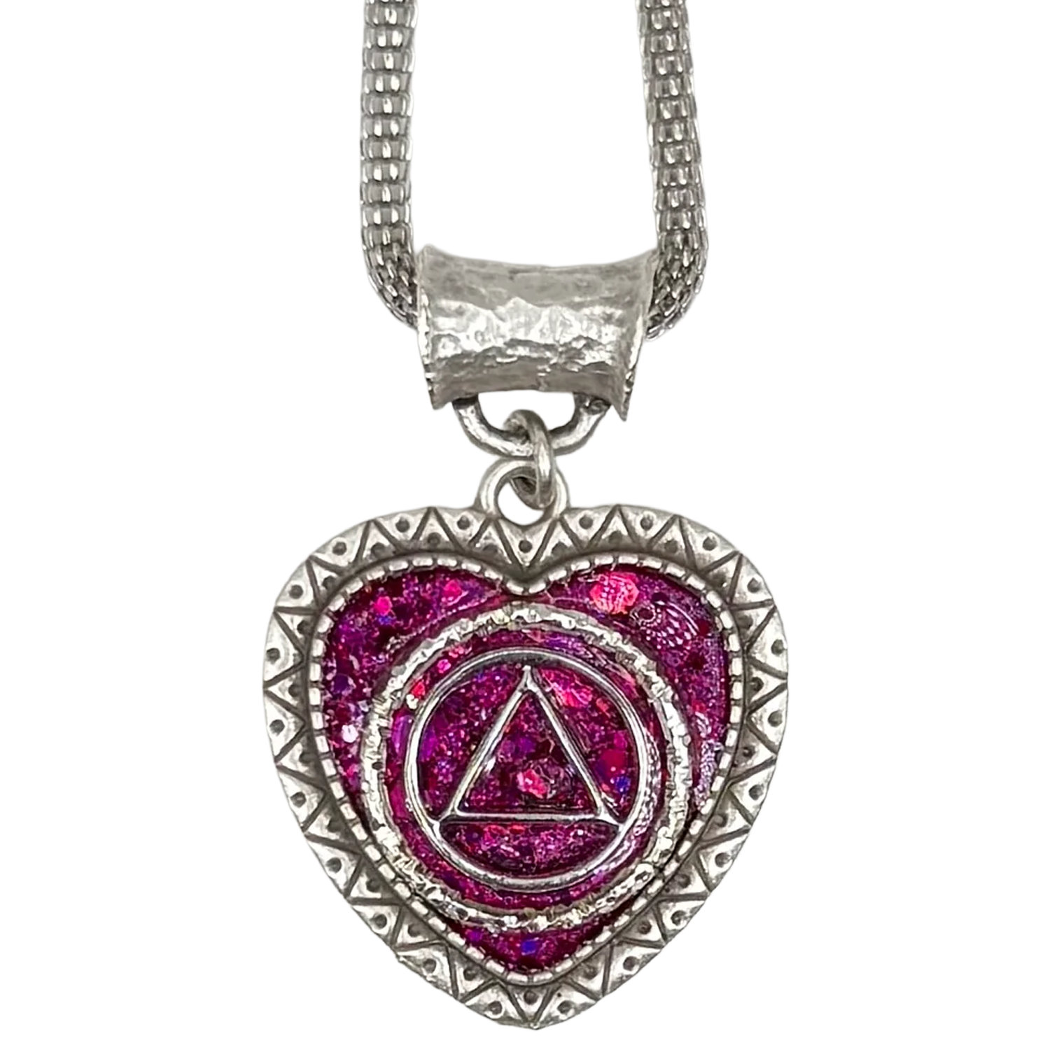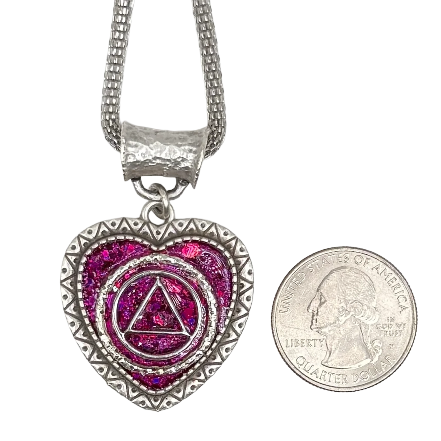 A03. "Pink Starlight Heart", AA Silver Plated Necklace.