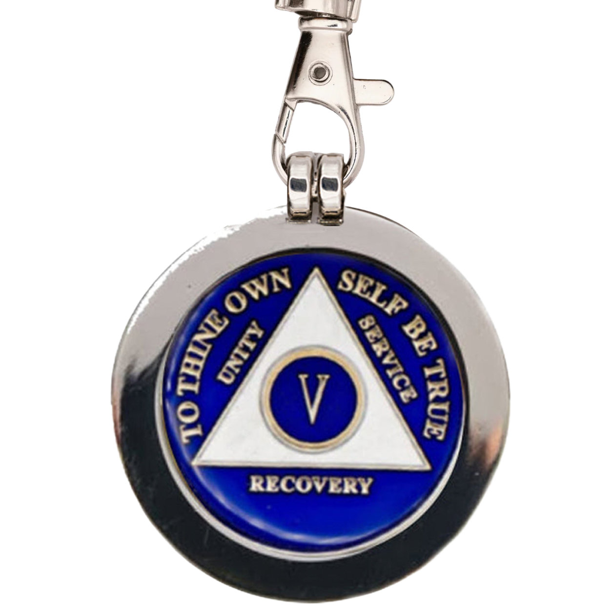 Comes in Silver only. Coin or medallion sold separately. This key chain fits any recovery medallion or bronze coin of your choosing and beautifully displays both sides of the coin. The bezel accommodates 1-3/8" - standard bronze, plated, & Tri-colored medallions. (Medallions not included)