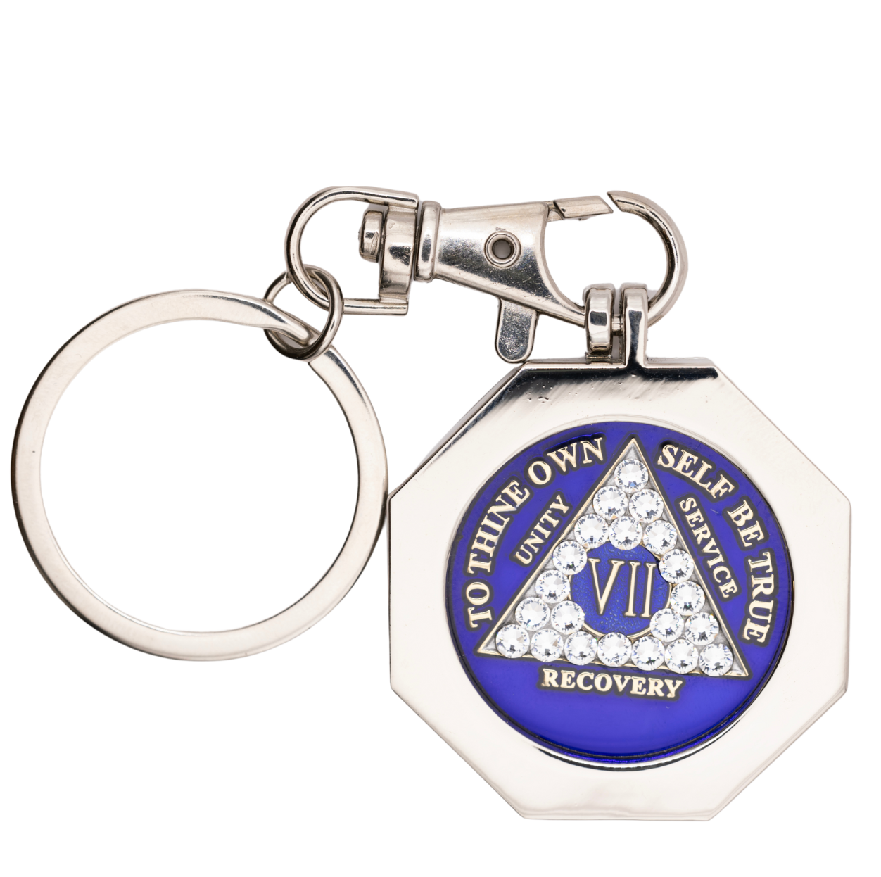 Comes in either Shiny Silver or Brushed Silver finishes. Coin or medallion sold separately. This key chain fits any recovery medallion or bronze coin of your choosing and beautifully displays both sides of the coin. The bezel accommodates 1-3/8" - standard bronze, plated, & Tri-colored medallions. (Medallions not included)