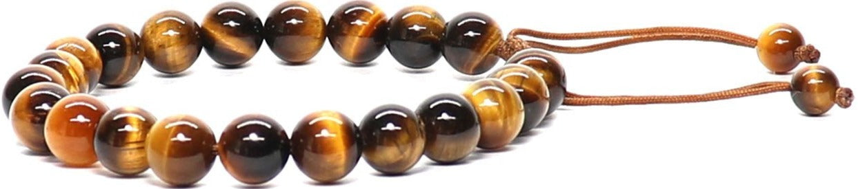 These crystal bracelets are durable and stylish. Simply pull the two strings to tighten or loosen the bracelet. Also available in elastic with silver protection charm.