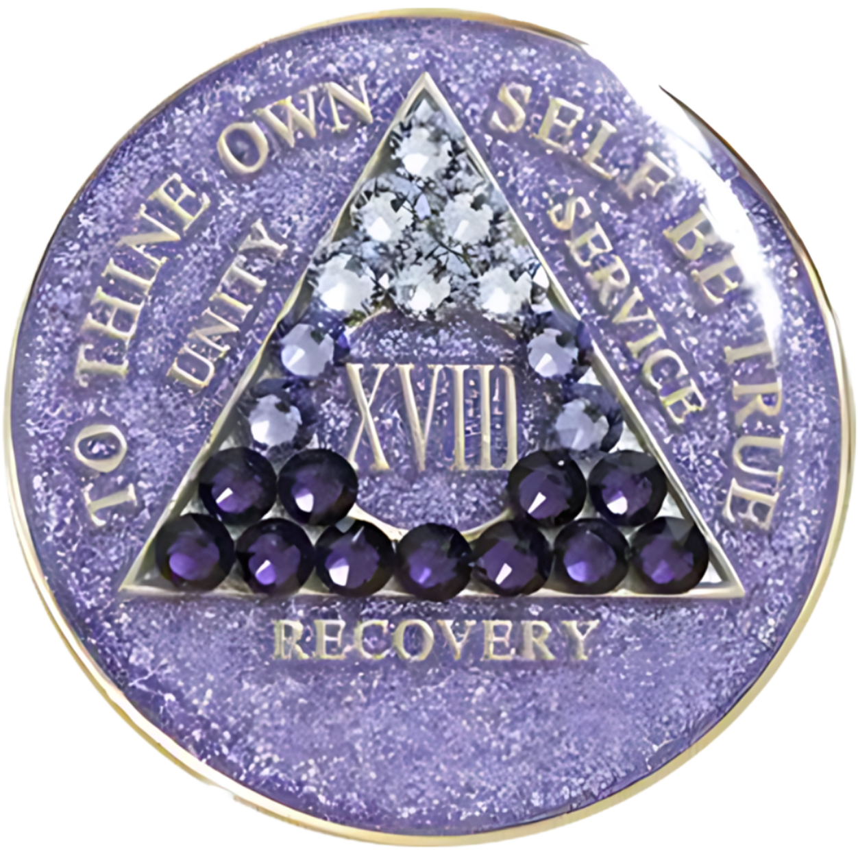 AA Coin, #A39. Glitter Lavender AA Chip w Purple Trans (Yrs 1-50)