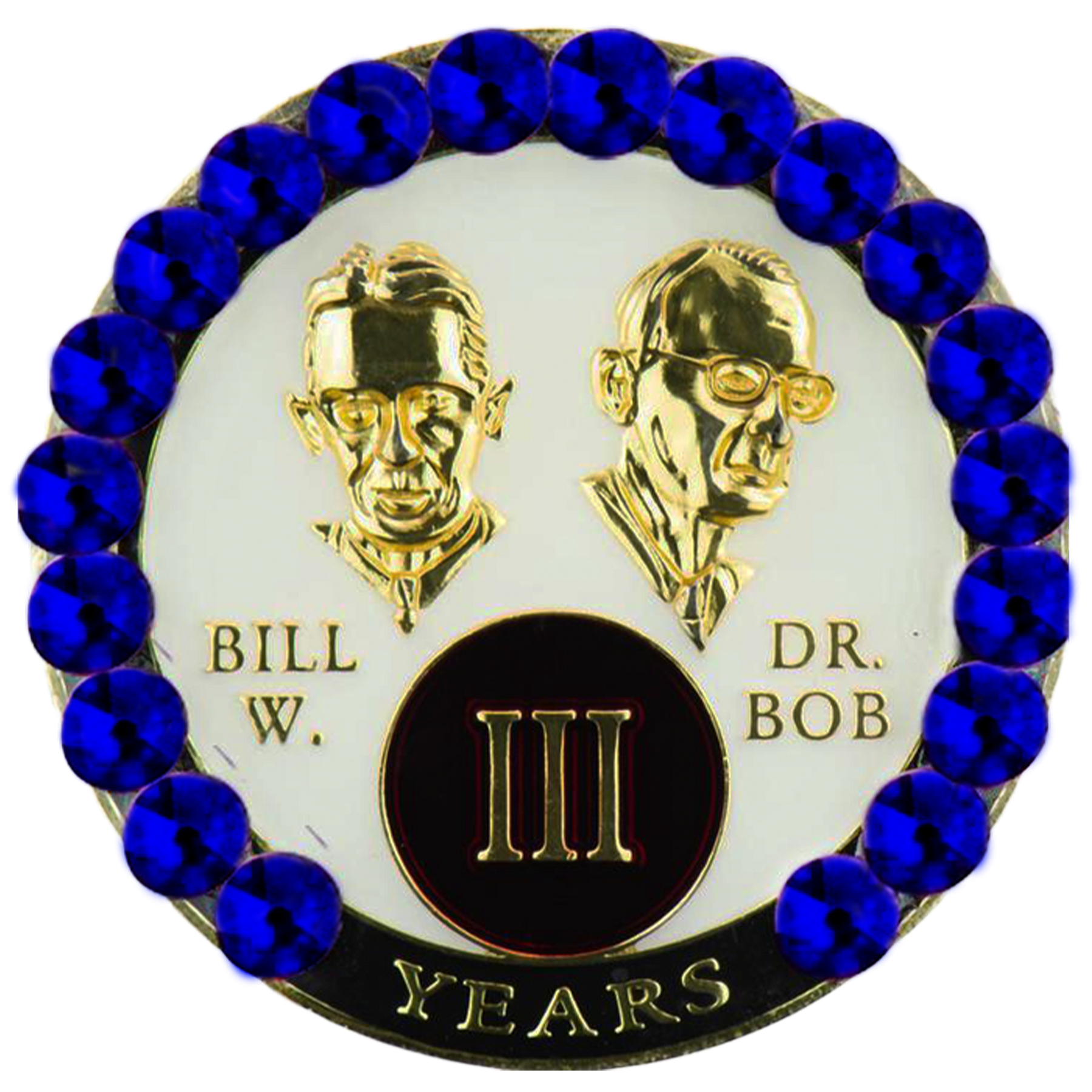 This recovery coin showcases a beautiful multi-colored enamel design, engraved with 24kt gold plating. On the front, the founding members of AA, Bill Wilson and Dr. Bob Smith, along with the anniversary year in Roman numeral, and "Unity, Service, Recovery" around the edge. On the back of the coin is the famous AA quote, "Rarely have we seen a person fail who has followed our path."