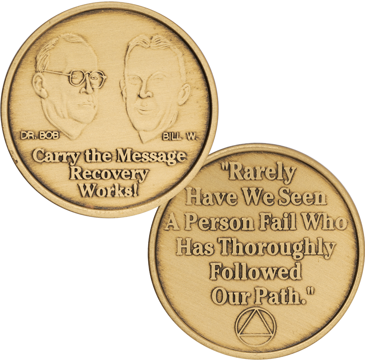 Introducing CHOICES ‚Carry the Message, Bill & Bob Bronze Coin is a recovery medallion designed to commemorate your recovery journey. Crafted from high-quality bronze, it features a unique design that serves as a lasting and valuable reminder of your progress. Add it to your collection and proudly show your support for a healthy, successful recovery.
