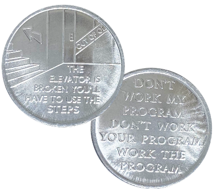 Introducing CHOICES‚ Elevator is Broken, Take the Steps Aluminum Coin is a light yet durable recovery medallion that serves as a daily reminder to put in the work, one step at a time. Crafted from high-quality aluminum, it's perfect for keeping your motivation close and makes a meaningful addition to any recovery collection.