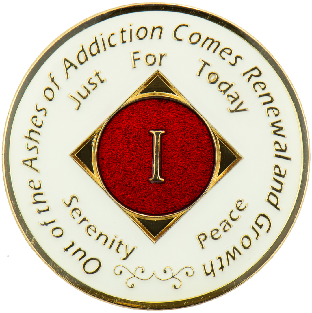 NA Coin, #N32.Red NA Medallion w White Crystals (Yrs 1-45)