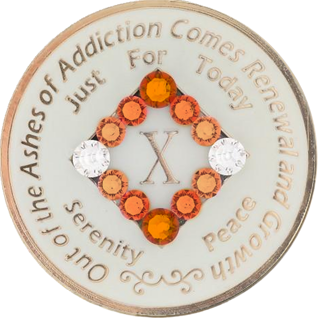 NA Coin, #N17. NA Pink Coin w White Crystals (Yrs 1-45)