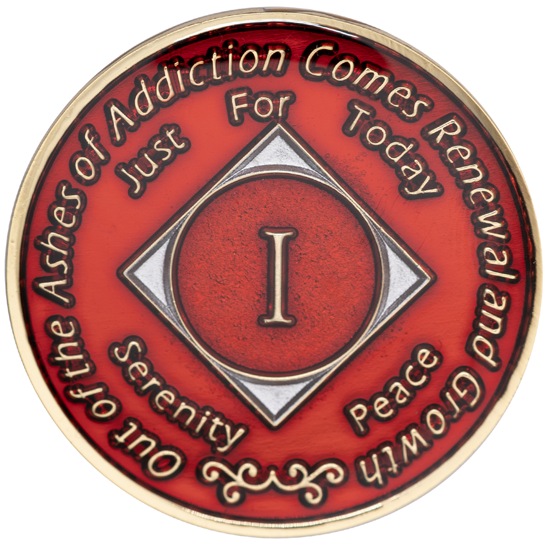 NA Coin, #N35. Red NA Medallion w Rainbow Bling (Yrs 1-45)
