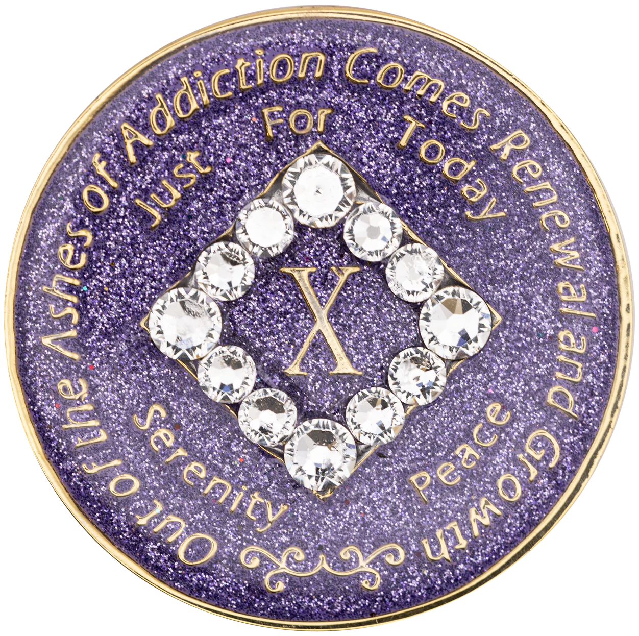 NA Coin, #N22. Glitter Lavender NA Medallion w White Crystals (Yrs 1-45)