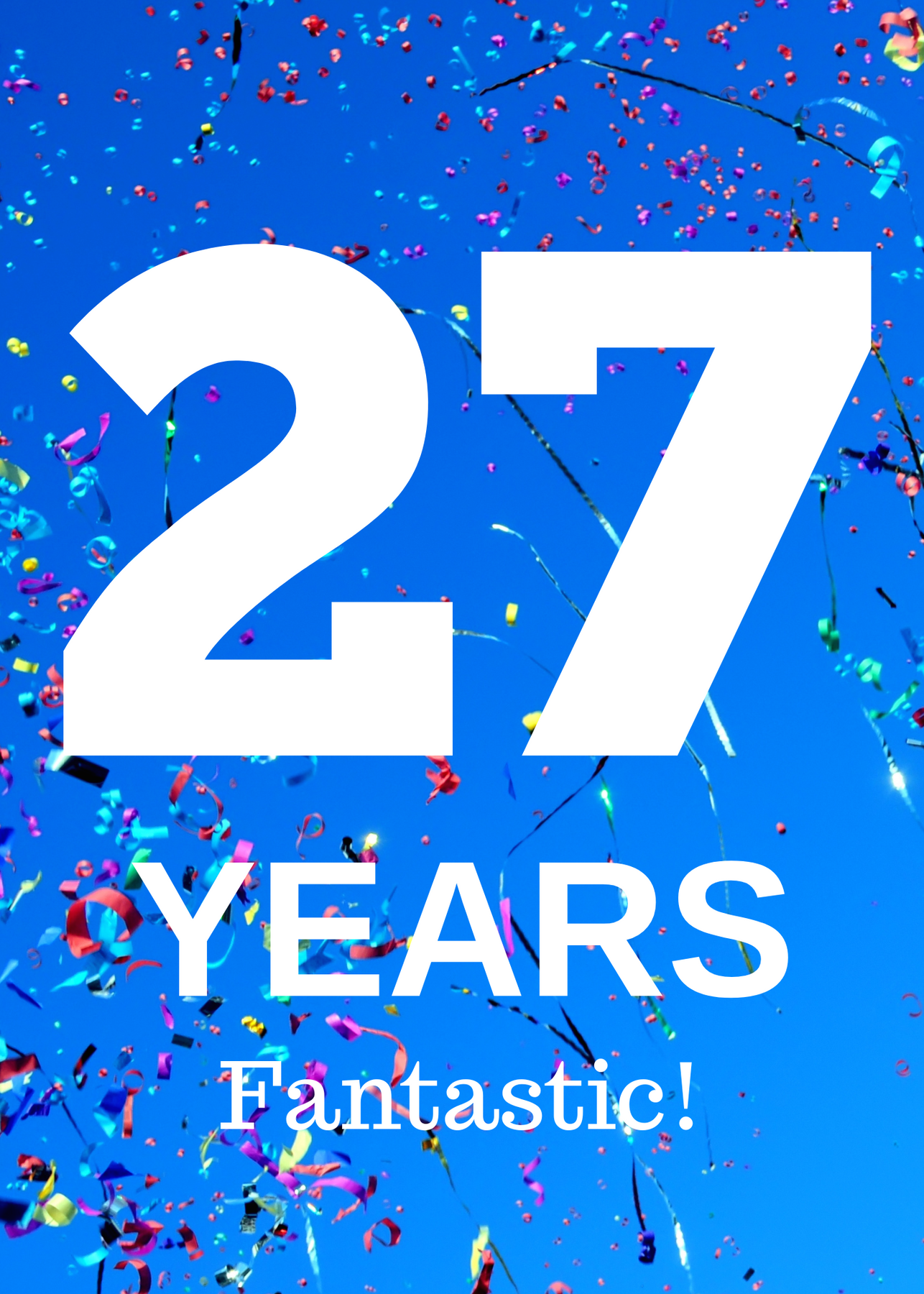 Front: The anniversary year and the words: "Amazing Difficult Fantastic Frightening Happy Sad Miraculous Year"