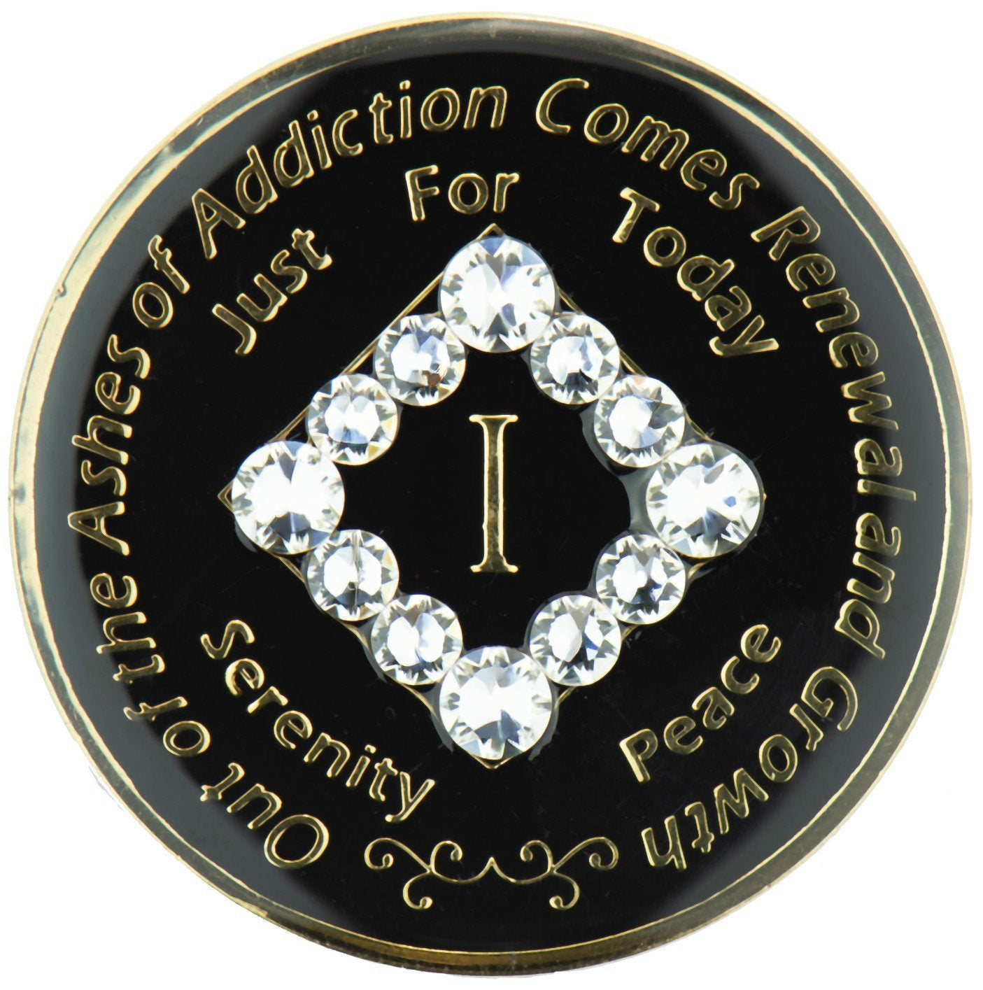 NA Coin, #N38. Black w White Crystals (Yrs 1-45)
