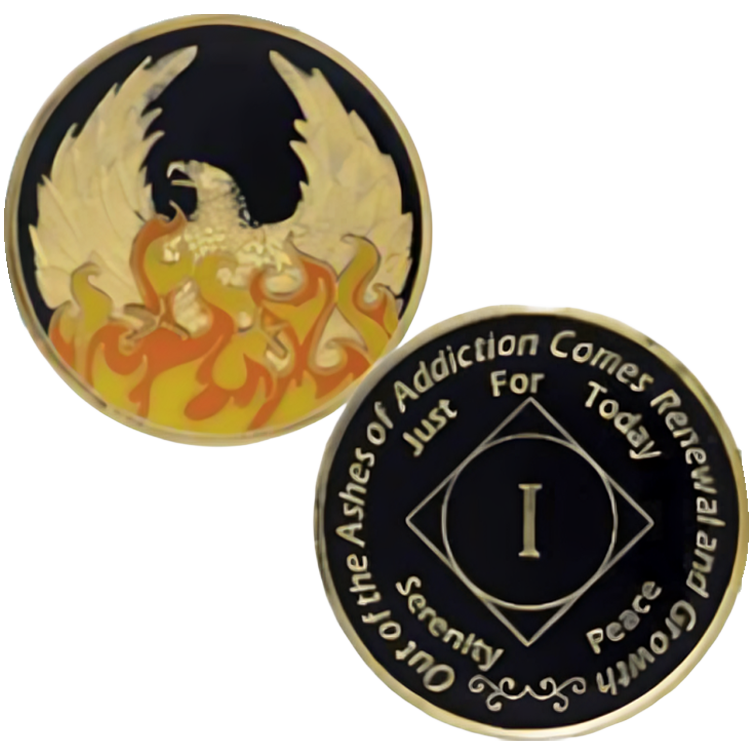 Introducing CHOICES ‚This beautiful tri-colored enamel medallion features the time-honored recovery phrases ‚Out of the Ashes of Addiction Comes Recovery and Growth‚ and Just for Today, along with the words Serenity and Peace. The front also displays the Roman numeral for the recovery year, making it a meaningful keepsake to celebrate sobriety milestones.