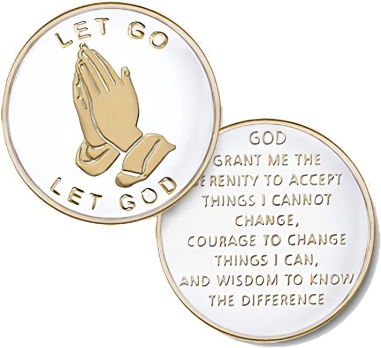 Introducing CHOICES Let Go & Let God, White Recovery Medallion, it's perfect for marking progression in your recovery. Wear it as a proud symbol of your sobriety or give it to a loved one as a sign of support. Our AA medallion is a great way to commemorate important moments in your life. Let Go & Let God, White Recovery Medallion is heavy and helps remind you of the importance of recovery. Recovery medallion is light and helps you stay motivated.