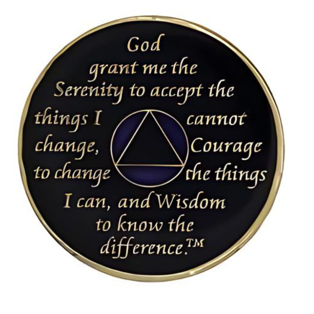 Introducing CHOICES Multi-color best-selling Sobriety Chips, an ideal present for your loved one. This Sobriety recovery medallion showcases a stunning, multi-colored enamel design, engraved with 24kt gold plated engraving with the timeless Twelve Step program phrase "To Thine Own Self Be True" on the front, along with the anniversary year in Roman numeral and the words "Unity, Service, Recovery" encircling the Sobriety triangle. On the reverse side, you'll find the Serenity prayer.
