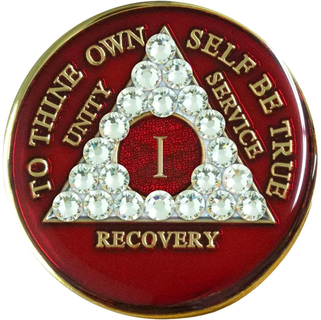 AA Coin, #A84. Red AA Medallion w White Crystals (Yrs 1-65)