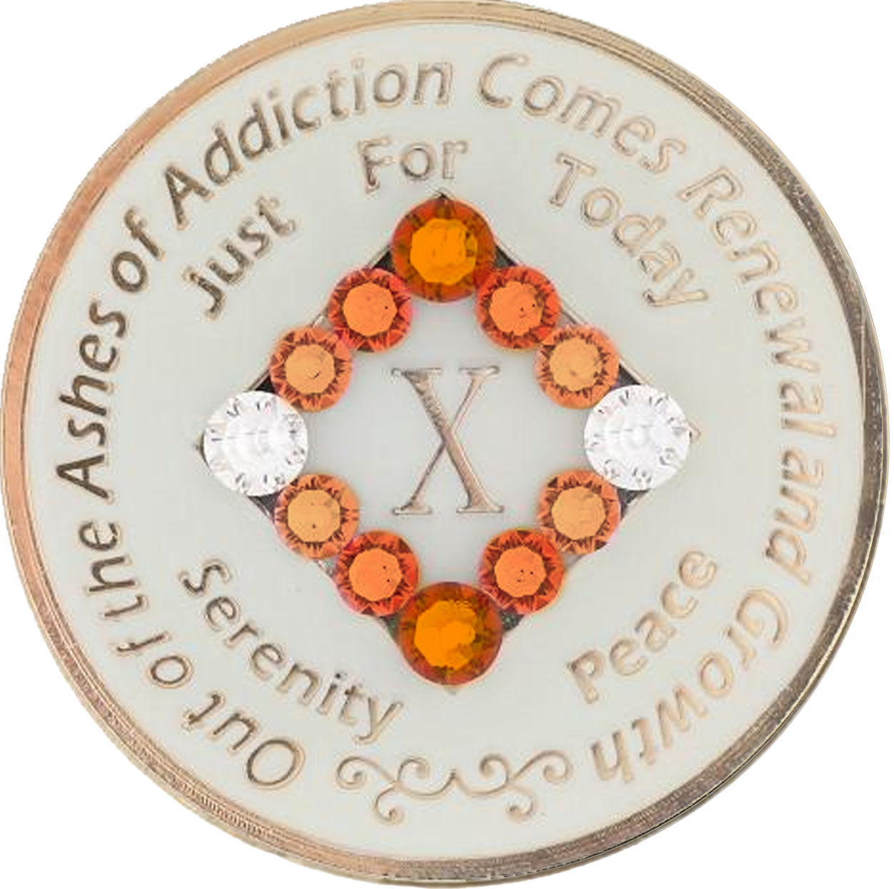 Our classic NA coin with gorgeous genuine Swarovski crystals is our best-selling medallion and is the perfect gift for your loved one!   This NA chip carries the perfect sentiment and will wow anyone who sees it.  It features dazzling, genuine Swarovski crystals that are custom-crafted upon order.