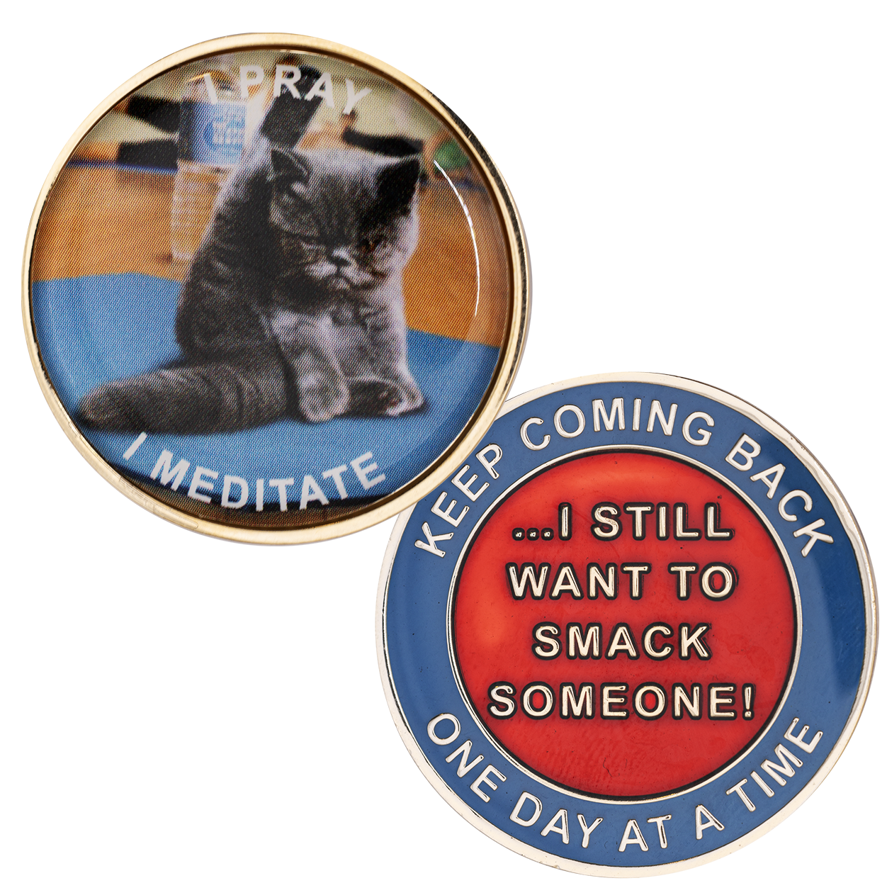 Introducing CHOICES Yoga Cat Medallion. Sometimes a little humor is required. A great coin to give to a Sponsee or an old timer, fitting for all. Yoga Cat Recovery medallion is a great way to commemorate important moments in your life. Metal medallion is heavy and helps remind you of the importance of recovery. Recovery medallion is light and helps you stay motivated.
