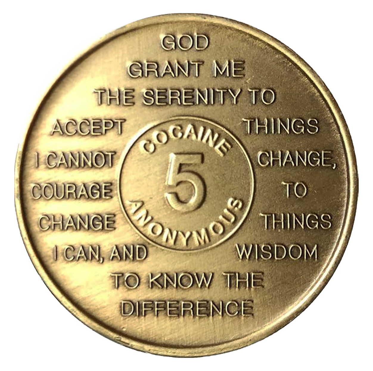 Introducing CHOICES — Cocaine Anonymous Bronze Medallion featuring the inspiring words "Hope, Faith, Courage" on the front, with the "CA" emblem in the center. The reverse side displays the Serenity Prayer, serving as a timeless reminder of strength and perseverance in recovery.